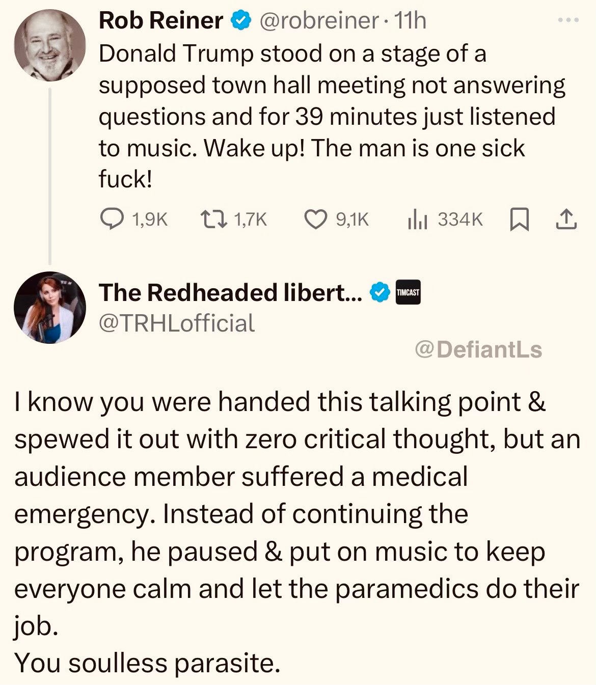 Any journalist with integrity would have researched this particular context and started a headline with something like, “Medical Emergency At Trump Town Hall…”